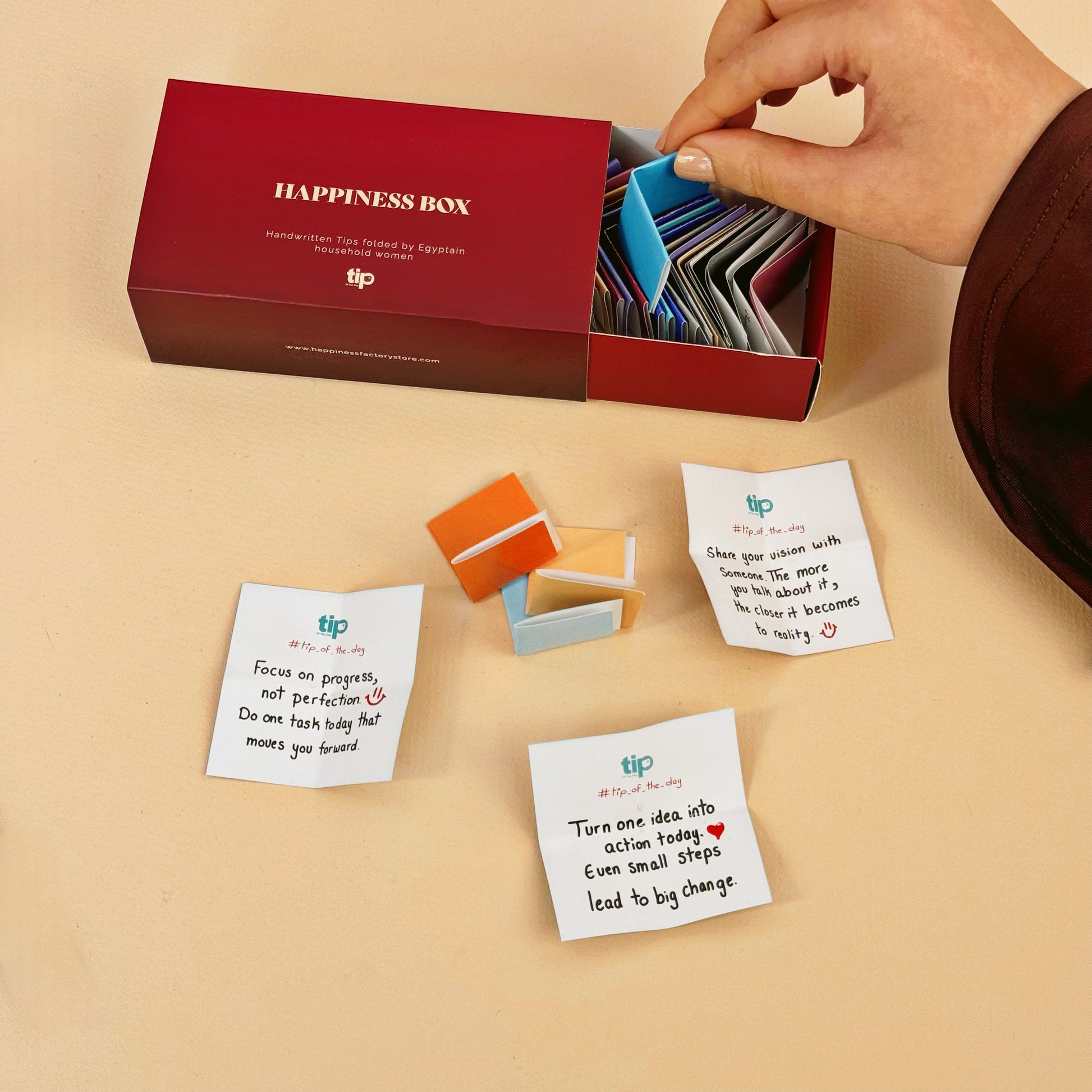 7- صندوق السعادة يحتوى على 40 رسالة تحفيزية مكتوبة يدويًا