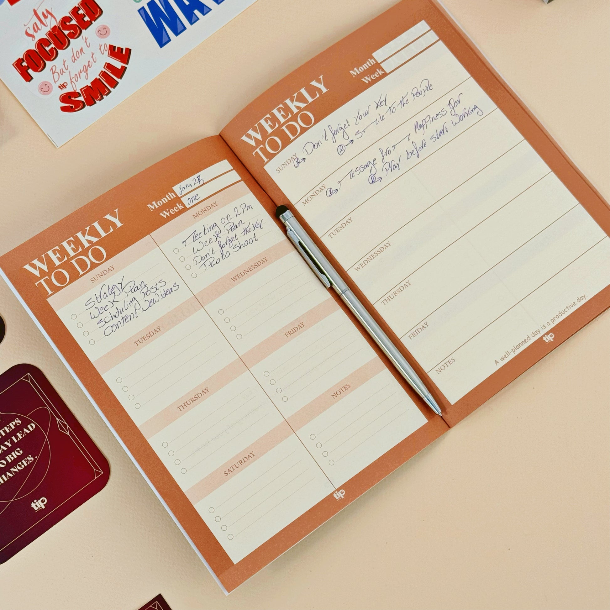 الأجندة مقسمة لـ 12 موضوع لتعزيز الإنتاجية والصحة النفسية، على سبيل المثال
