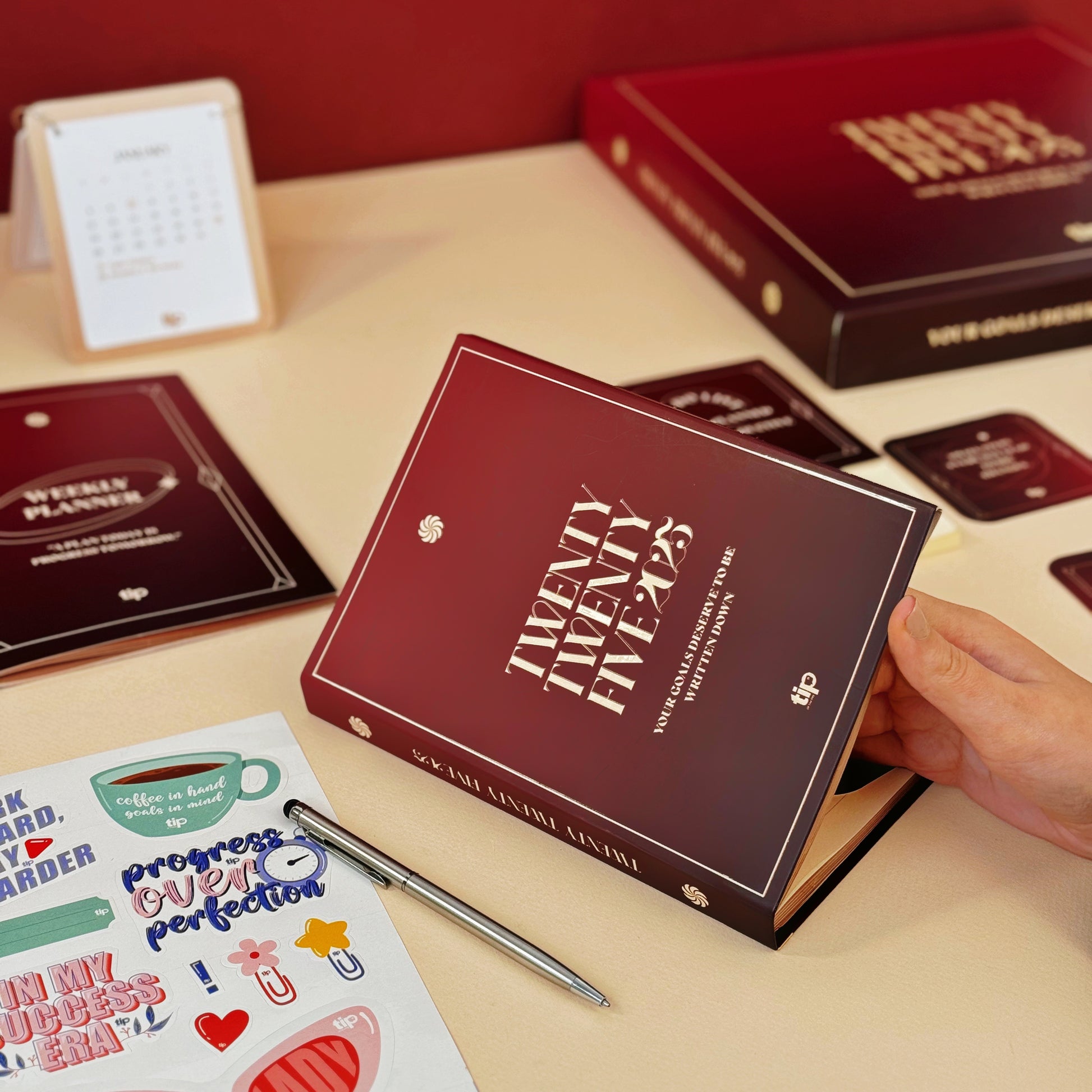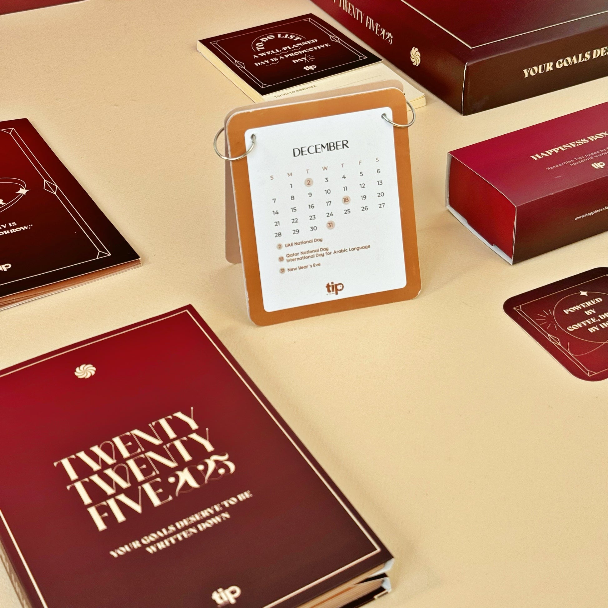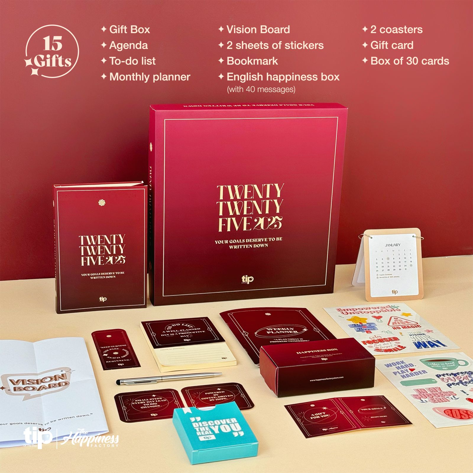يسعدنا أن نقدم أجندة 2025 باللغة الإنجليزية مهتمة بالصحة النفسية والإنتاجية، لتدفعك نحو النمو الشخصي والتغيير الإيجابي، وتجعل عامك مثمرًا لا يُنسى.