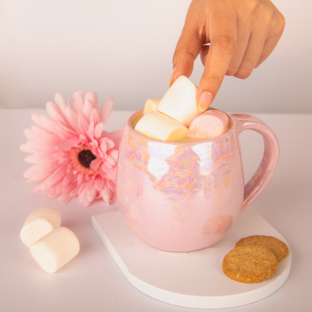 كوب جديد باللون الوردي الممزوج بألوان الطيف ليضيف شعور بالسعادة والبهجة والحيوية لجميع أوقاتك.